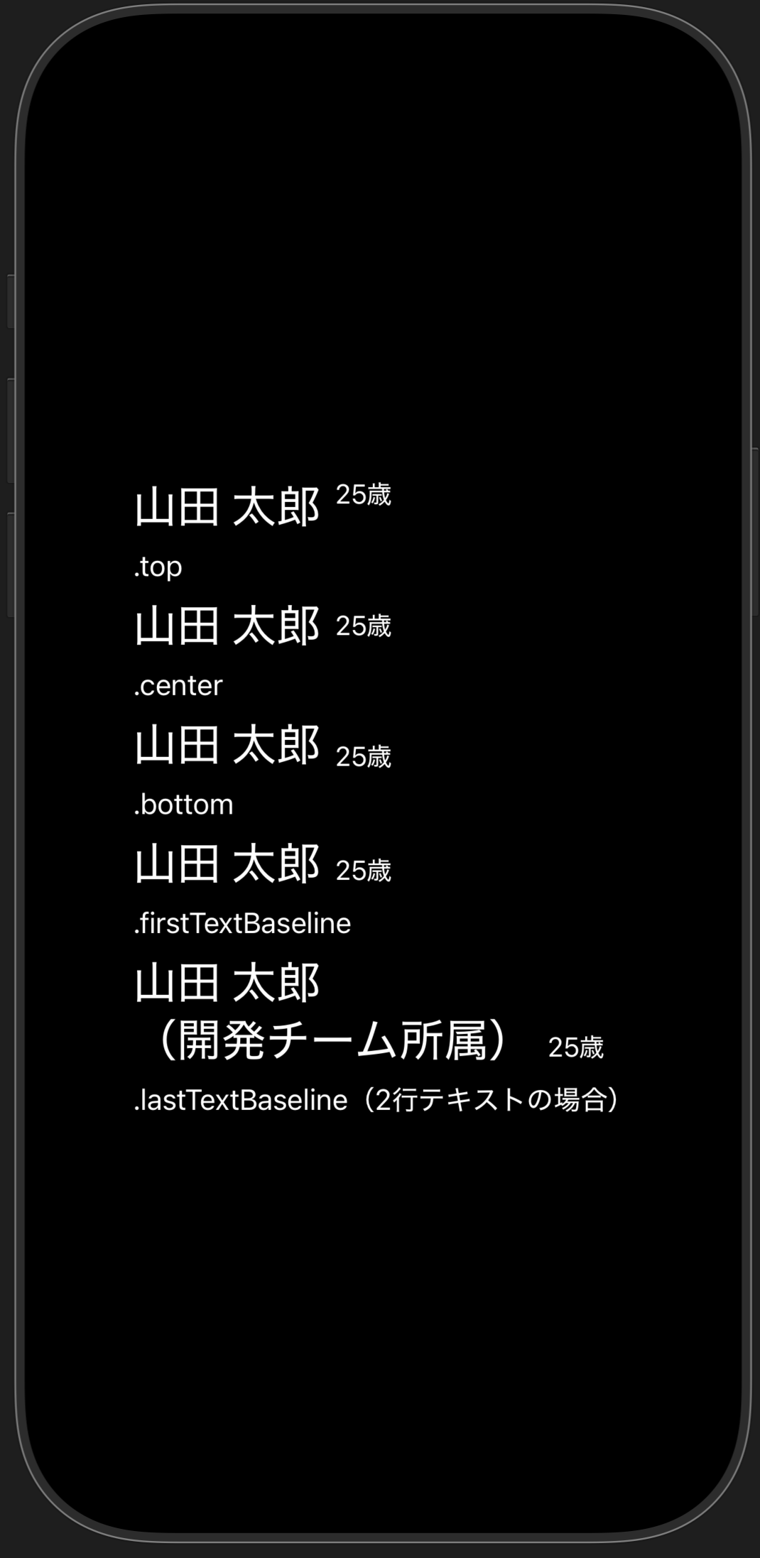 SwiftUIで横並びのテキストのAlignmentを下揃えにするのはどうするんだろ?と思い調べた。